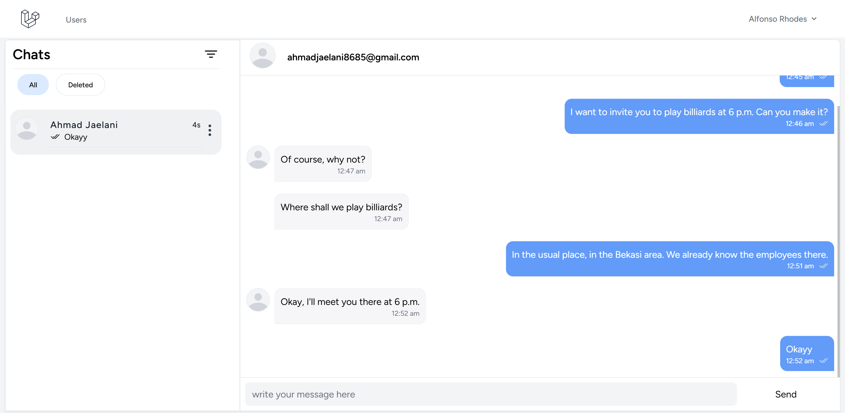 Livewire chat app