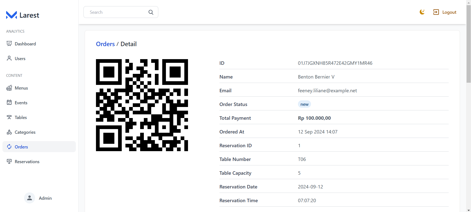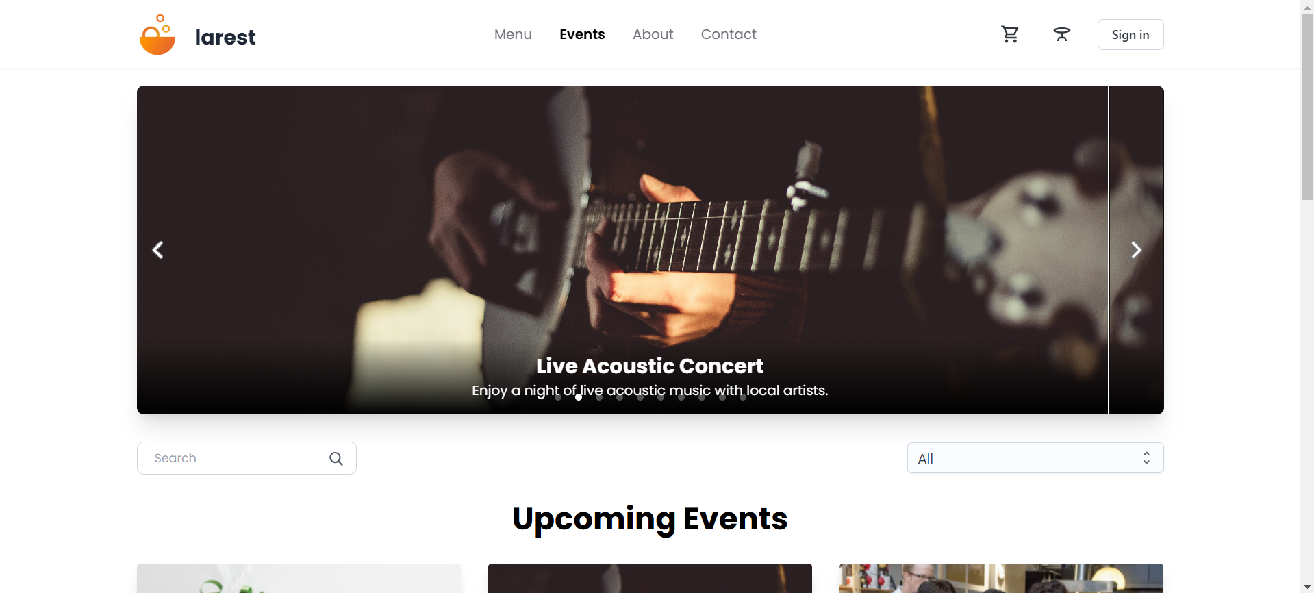 "Larest" is the name I chose for this application (Client version), which aims to digitize a restaurant experience. Through this app, customers can place orders directly, with features like cart, reservation, and online transactions intended to make ordering from home easier and more convenient.